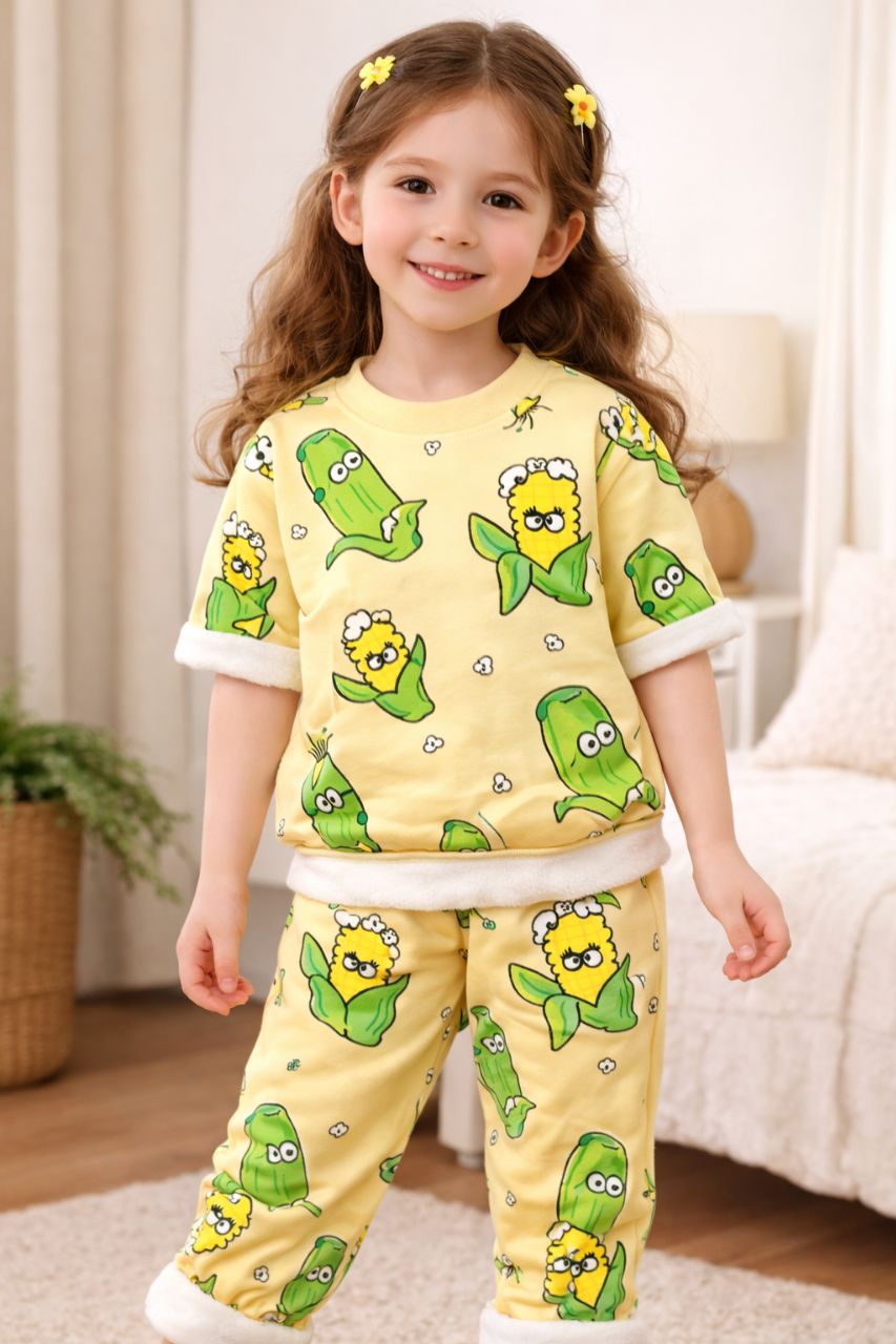 لباس بچه‌گانه بلوز و شلوار دخترانه طرح ذرت – مناسب ۶ سال دو مدل فروشگاه توکان لند