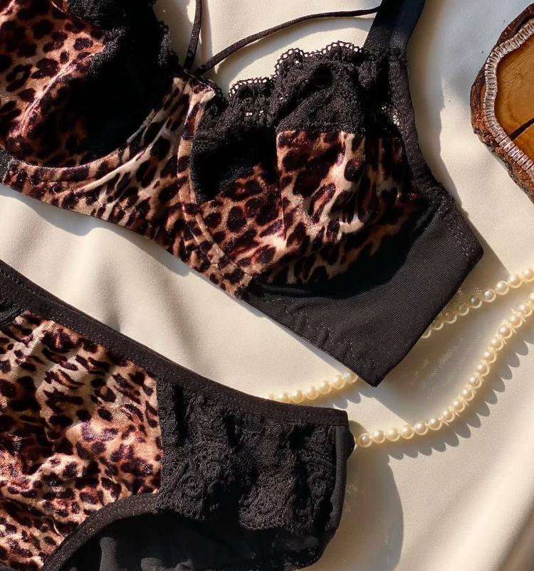 لباس زیر ست شورت سوتین فنردار داخل مخملی ست پلنگی جنس گیپور فروشگاه توکان لند