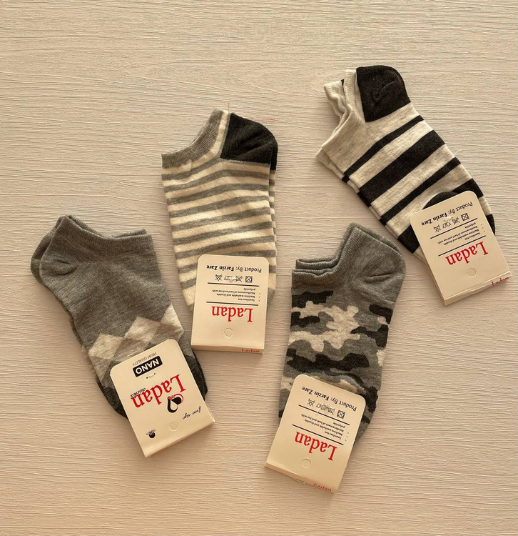 جوراب زیر قوزکی تم طوسی طرح ارتشی نخ پنبه جنس عالی ریز پافت بادوام سایزه ۴۲تا۳۶ فروشگاه توکان لند