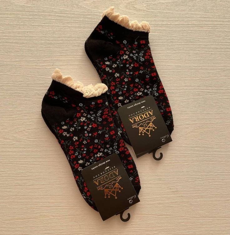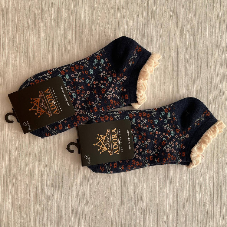 جوراب زنانه گلگلی لب چین آدرا نخ پنبه جنس عالی ریز پافت بادوام سایزه ۴۲تا۳۶